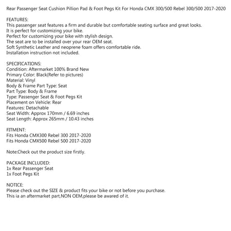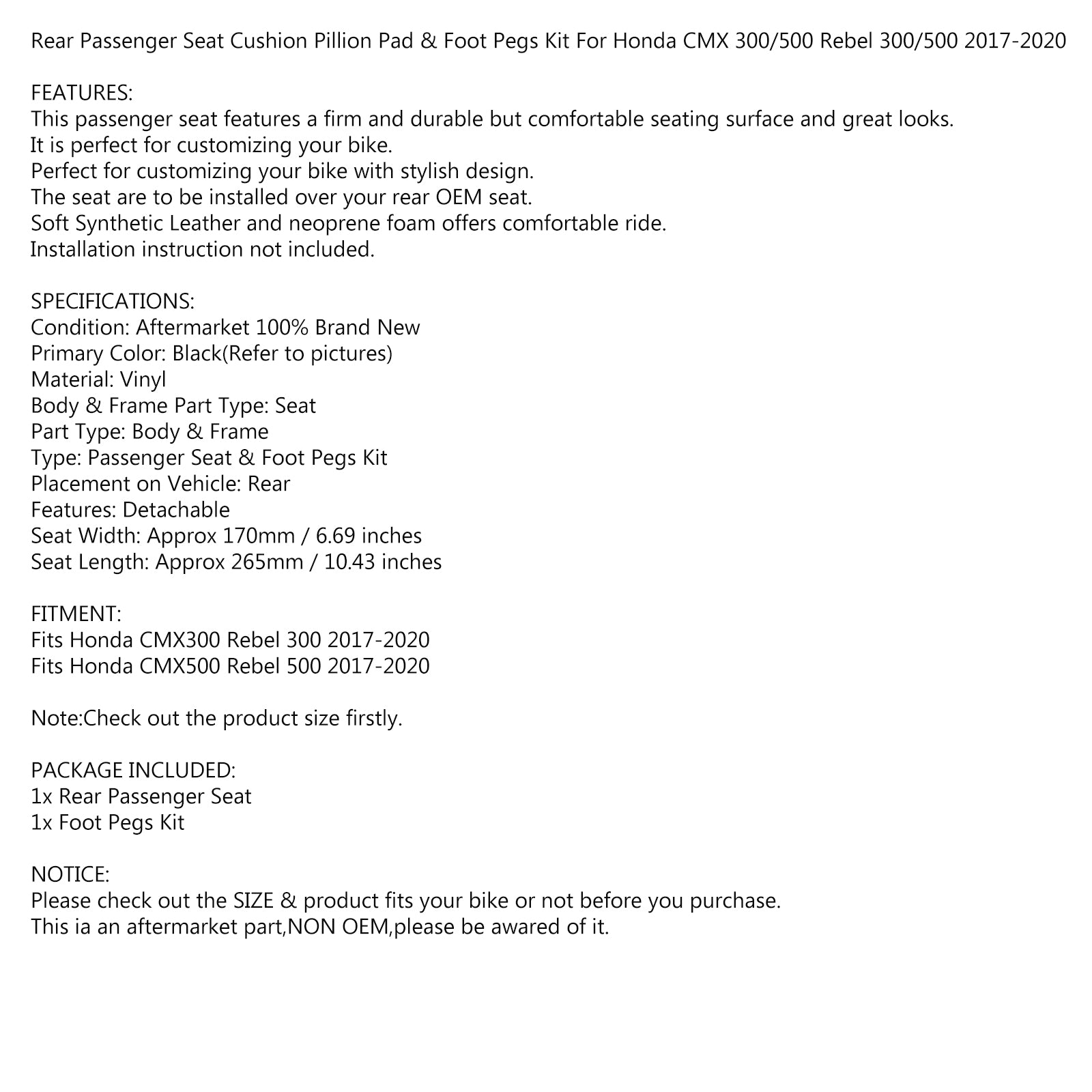 Beifahrersitz hinten und Fu?rasten-Kit für Honda Rebel 2017-2022 CMX 300 CMX 500