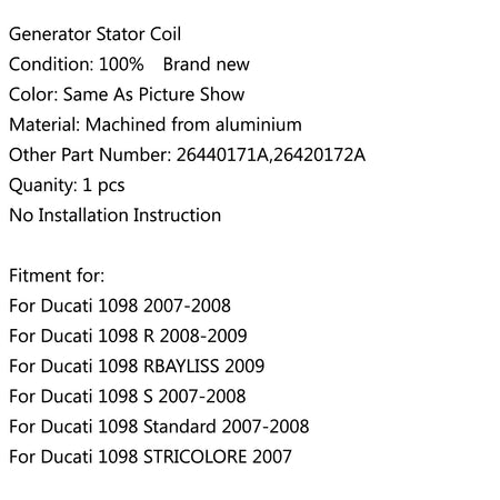 Generatorstatatorspule für Ducati 1098 R/S/rbayliss 1198 S/SP/Standard 749 Dark Generic