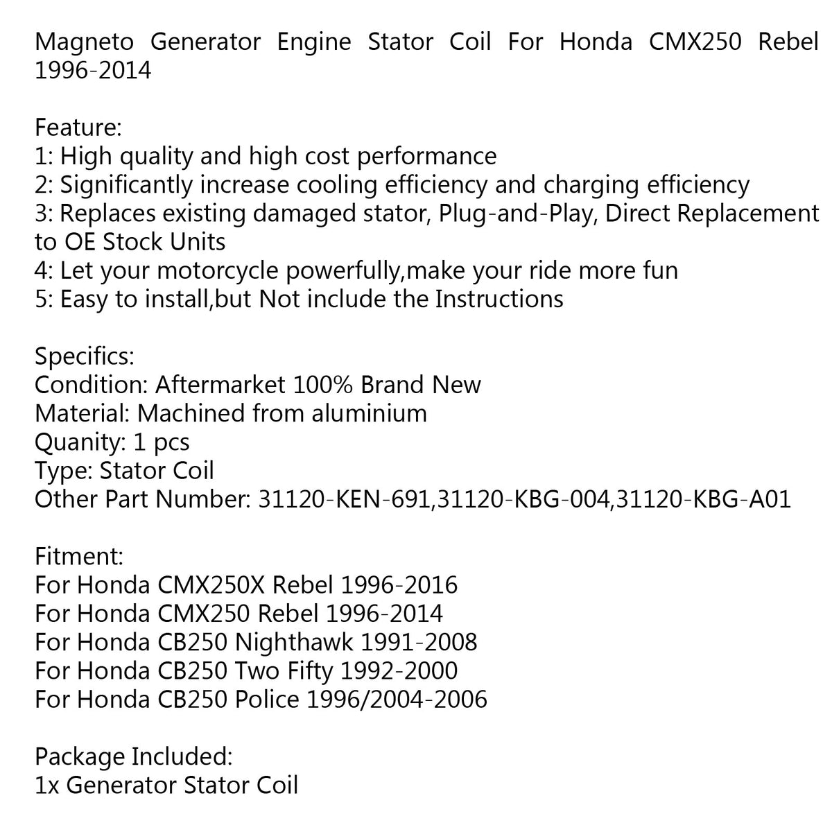 Generator Statorspule für Honda CMX250X Rebel (96-16) CB250 Nighthawk (91-2008) Generikum