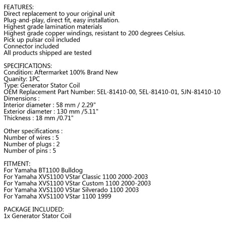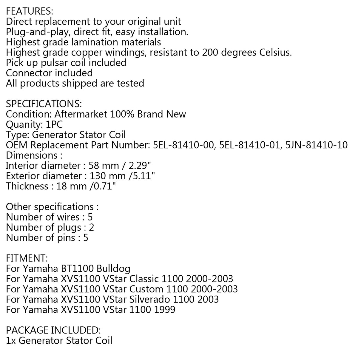 Generator Statorspule für Yamaha XVS1100 VSTAR 00-03 5EL-81410-00 5EL-81410-01 Generikum