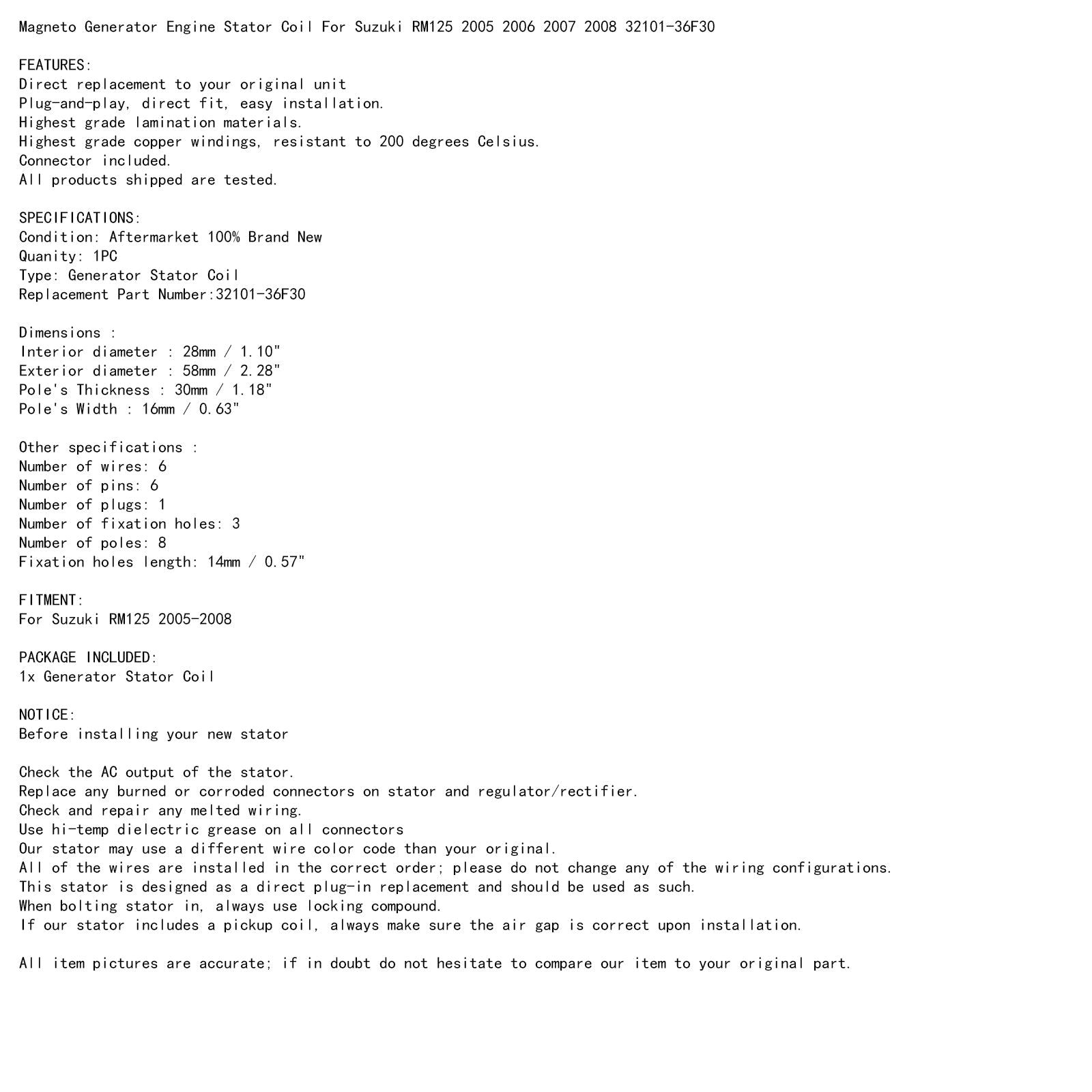Magnet-Generator-Motor-Statorspule für Suzuki RM125 2005 2006 2007 2008 32101-36F30