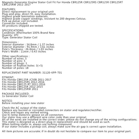 MAGNETO-Generatormotor-Statorspule für Honda CBR125R CBR125RS CBR125R CBR125RT CBR125RW 2011-2017