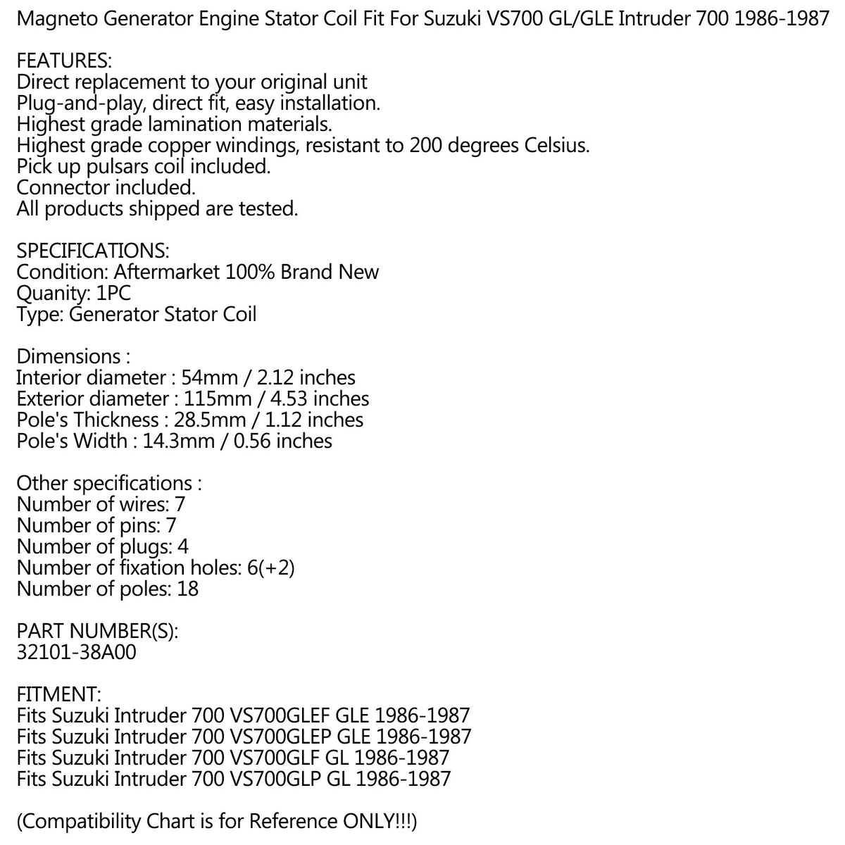 Generator Magneto Stator für Suzuki VS700 vs 700 GL Gle 1 Eindringling 700 86-87 Generic