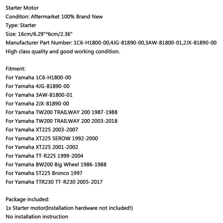 Motorstarter für Yamaha TW200 Trailway 200 XT225 Serow TT-R225 ST225 Bronco Generic