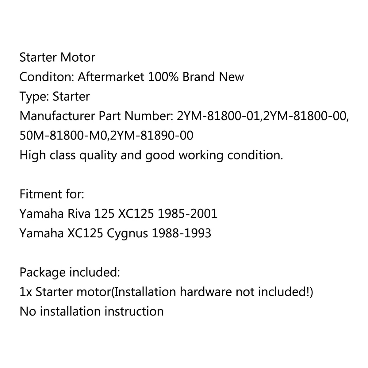 Motorstarter für Yamaha Riva 125 XC125 1985-2001 XC125 Cygnus 1988-1993 Generic