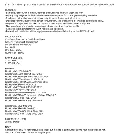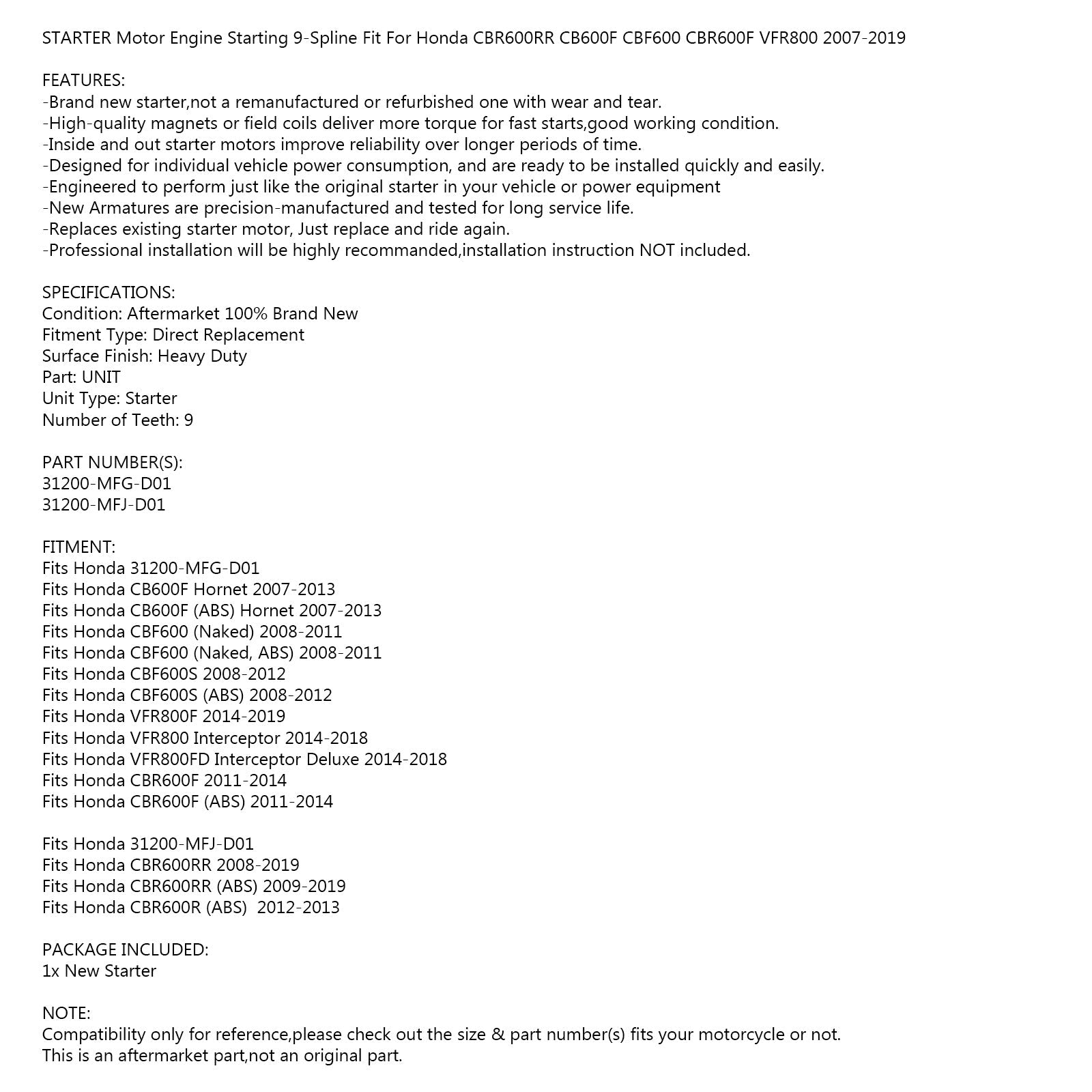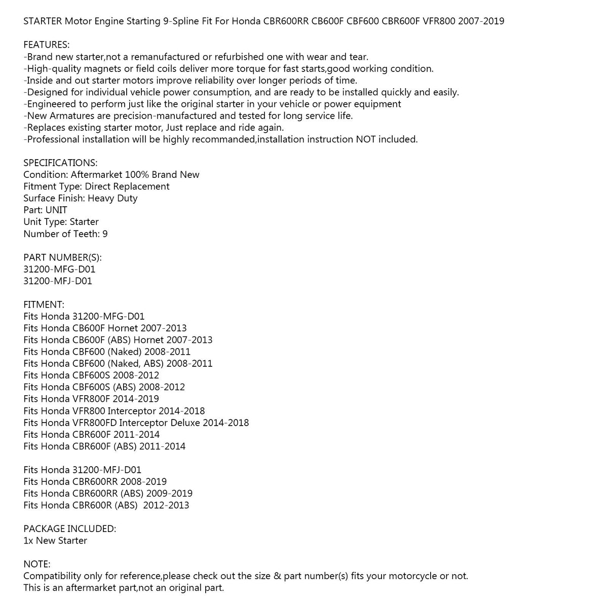 Startermotor Start 9-Spline-Anpassung für Honda CBR600RR CB600F CBF600 CBR600F VFR800 2007-2019