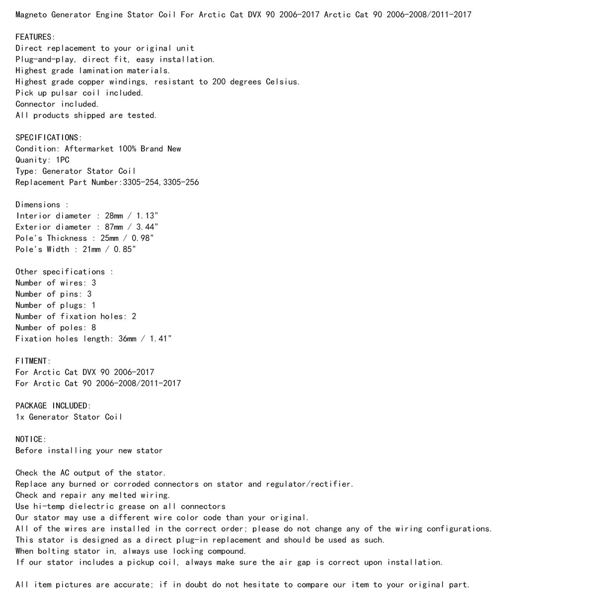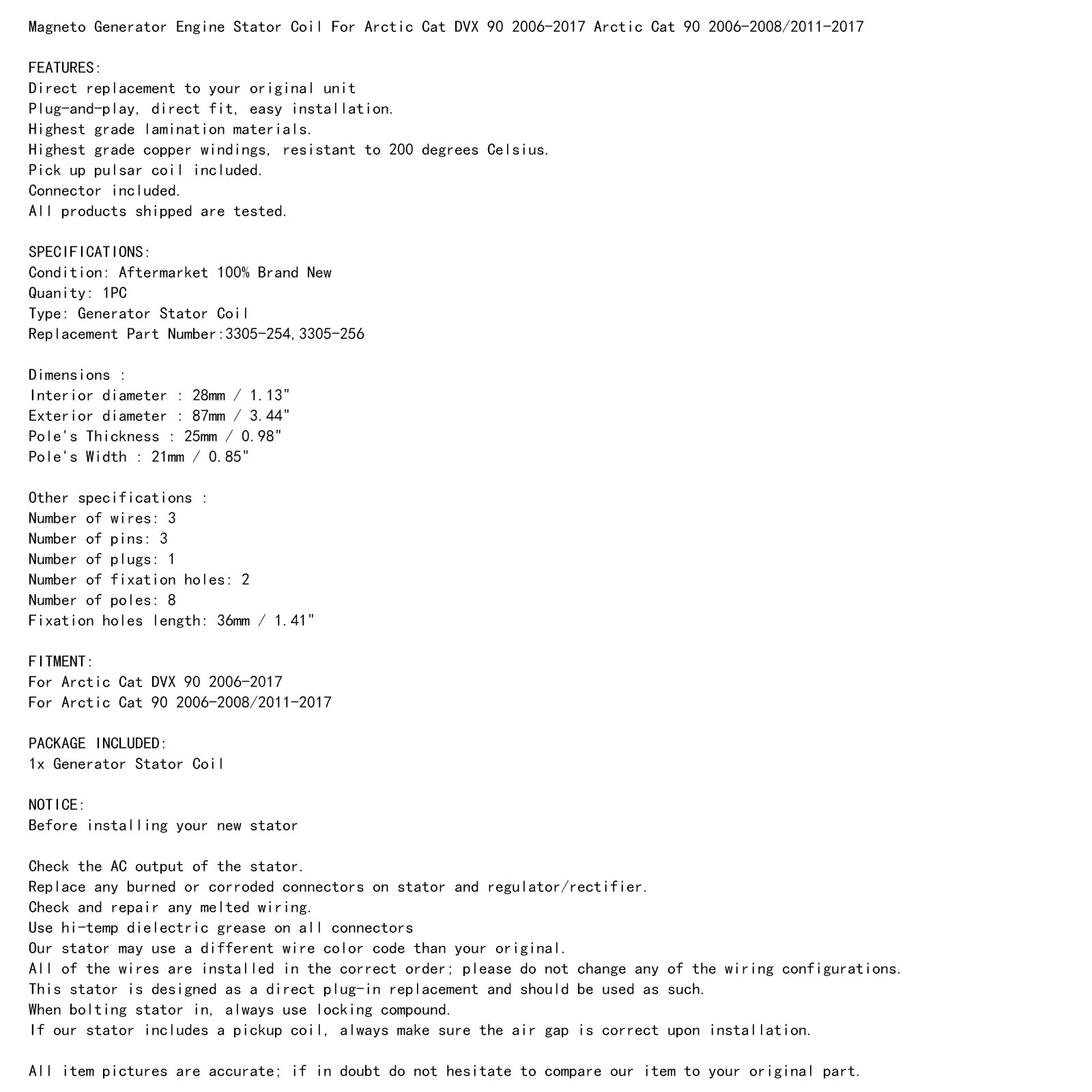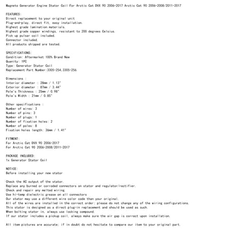 Magneto-Statorspule für Arctic Cat ATV 90 2x4 DVX 2006-2008/2011-2017 3305-254 Generika