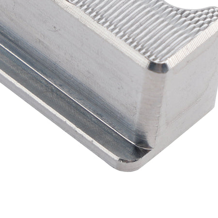 Aluminium ist den Kunststoffversionen überlegen, da es eine bessere Haltekraft hat (Kunststoff hat bei diesen kleineren Lochgrößen Schwierigkeiten, fest genug zu halten). Außerdem ist es steif genug, um über den Schraubstock hinauszuragen und so mehr Platz zu schaffen. Kunststoff verliert schnell seine Haltekraft, sobald er über die Schraubstockbacke hinausragt.
