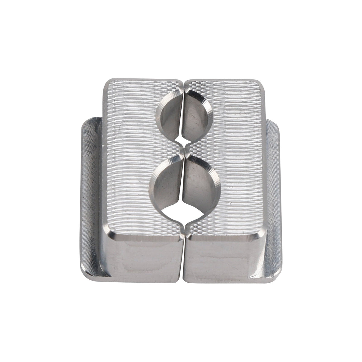 Diese 8 mm/10 mm MINI-Klemme ist platzsparend und kann im Notfall mit einer verstellbaren Zange verwendet werden. Diese Klemme ist aus 6061-Aluminium CNC-gefräst und gewährleistet eine Passung mit engen Toleranzen. Für eine bessere Haltekraft haben wir im Allgemeinen nur etwa 0,003 Zoll Spiel. Diese Klemme ist ein Muss für den Umbau von Gabeln und Stoßdämpfern. Sie passt für viele Gabeln und Stoßdämpfer von FOX, Rockshox, Manitou und DVO. Bitte achten Sie darauf, dass sie zu Ihrer Anwendung passt. Die Dicke beträgt 0,620 Zoll.