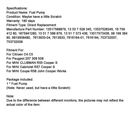 Hochdruck-Kraftstoffpumpe 1675941280 Passend für Citroen C4 C5 Passend für Peugeot 207 308 508