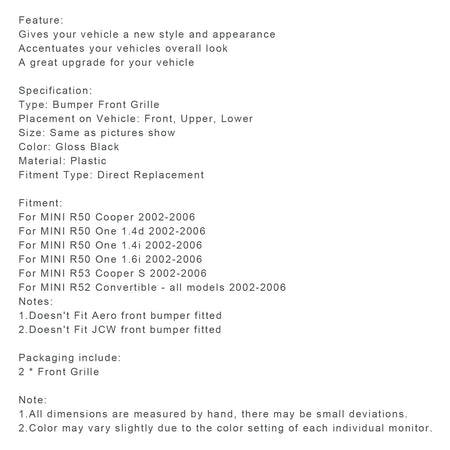 Mini Cooper R50 R52 R53 2002–2006 2 Stück Wabengitter-Frontgrill