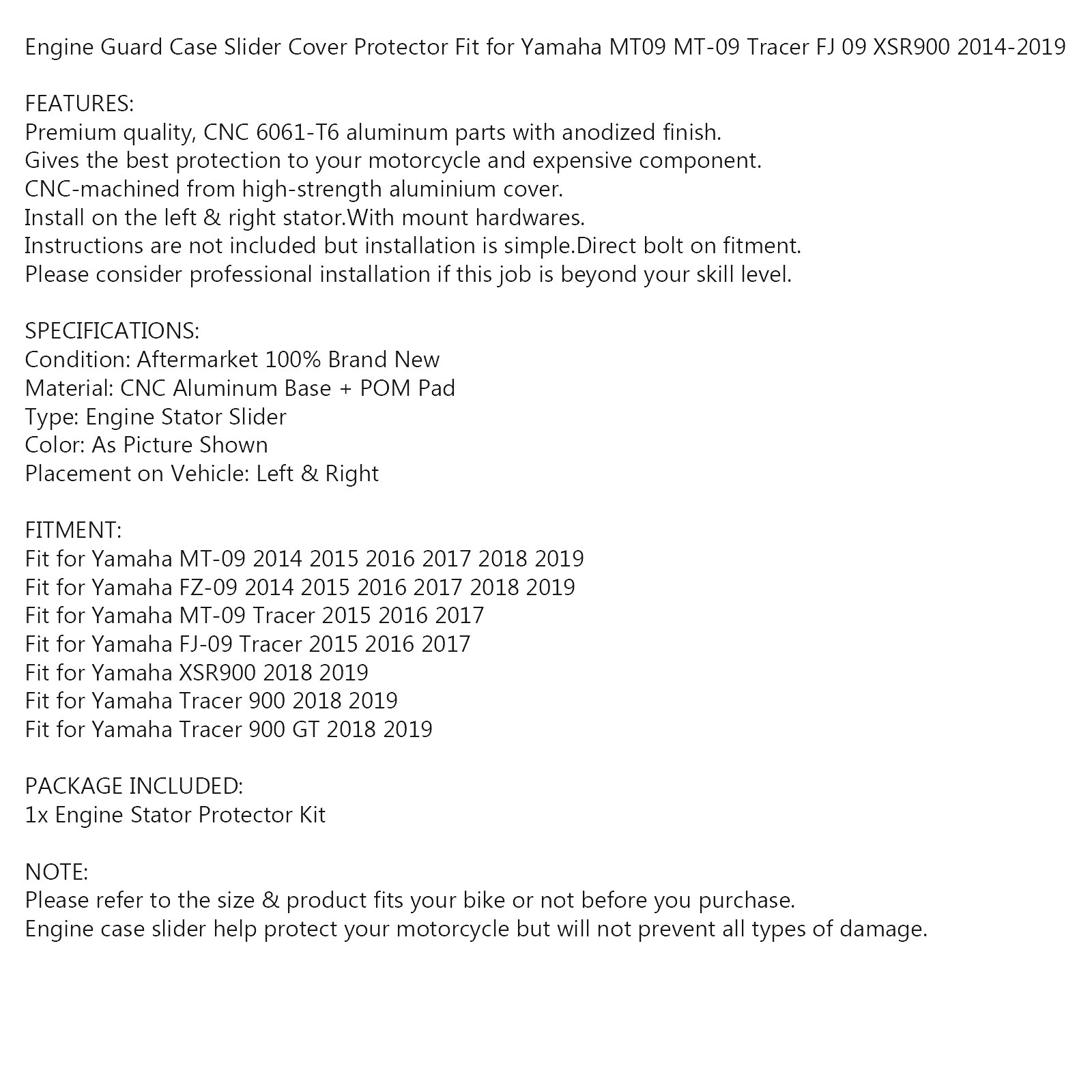Engine Guard Case Slider Cover Protector Fit for Yamaha MT09 MT-09 Tracer FJ 09 XSR900 2014-2019