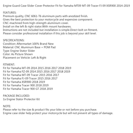 Motordeckel Schutz Sturzpad für Yamaha Tracer 900/GT FZ-09 MT-09 FJ-09 2014-2019
