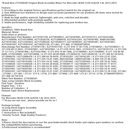 Neuer Motorblock (Teilenummer 2710300201) passend für Mercedes W204 C250 SLK250 1.8L (Baujahre 2012–2015)