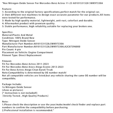 Stickoxidsensor für Mercedes-Benz Actros 2011-2023 A0101531528 5WK97330A