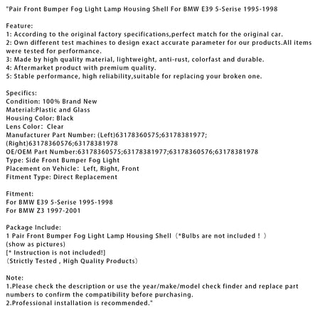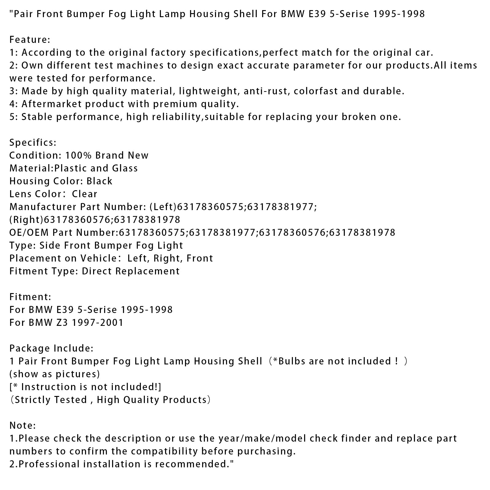 Paar Front Stoßstange Nebel Licht Lampe Gehäuse Shell Für BMW E39 5-Serise 1995-1998