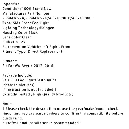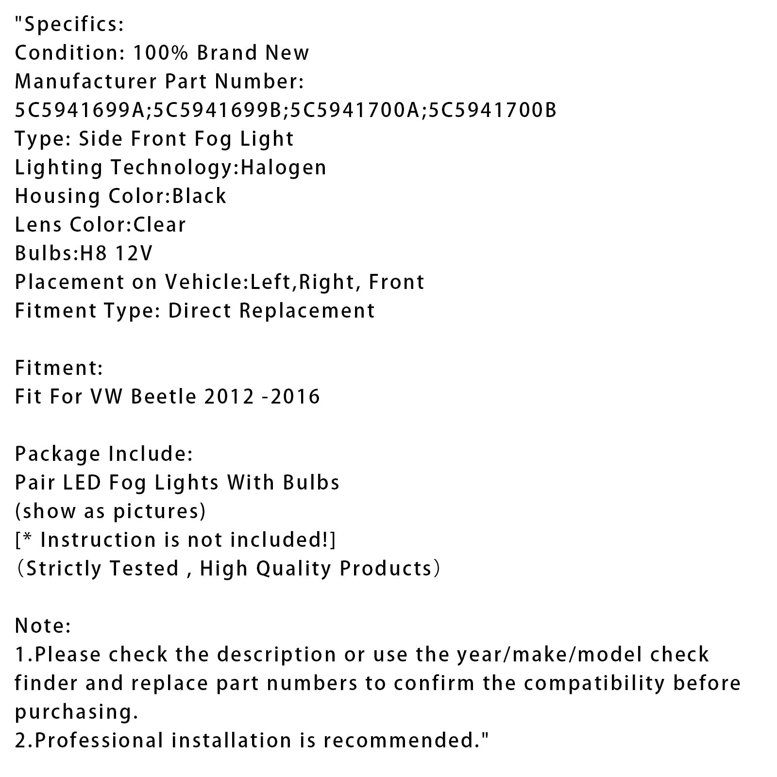 2012–2016 VW Käfer Paar Frontstoßstange Nebelscheinwerfer mit Birnen 5C5941700A