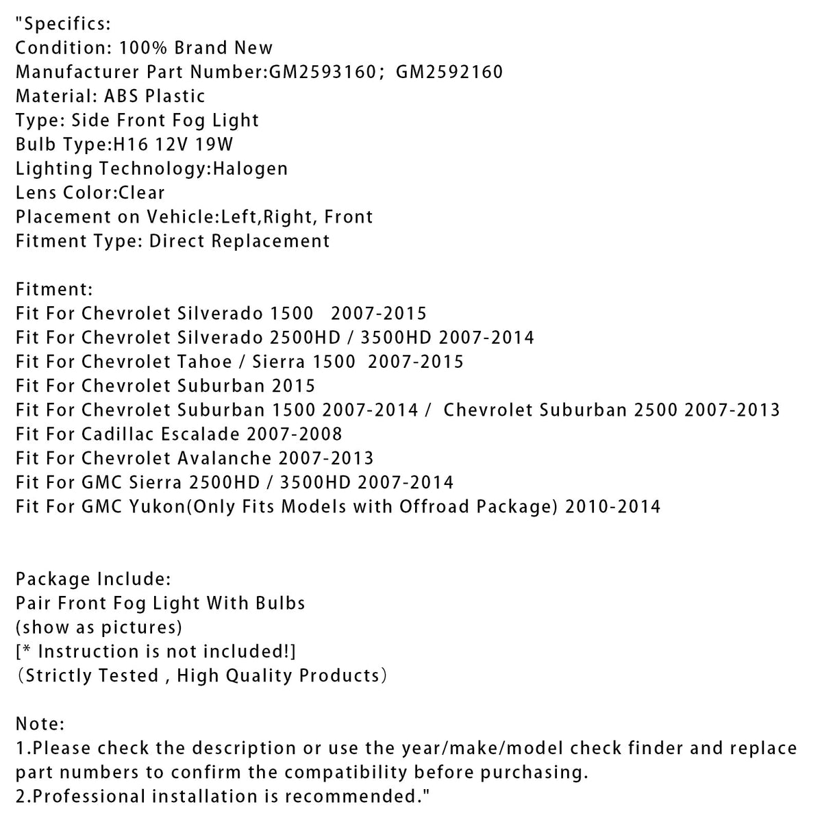 Paar Front Nebel Licht Lampen Mit Glühbirnen Für Chevy Silverado 2007-2013 Klare Linse