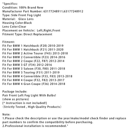 Paar Nebelscheinwerfer mit Leuchtmittel für BMW F20 F21 F30 F31 F80 2011-2019