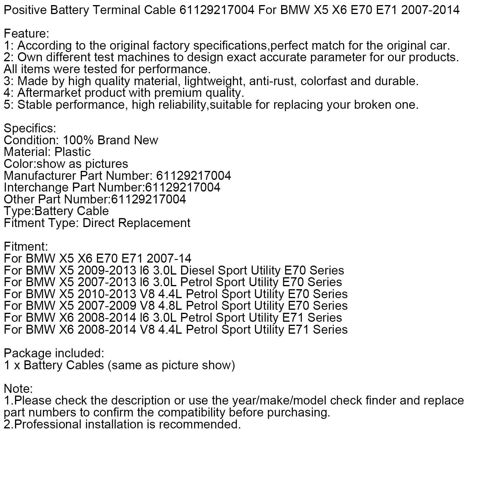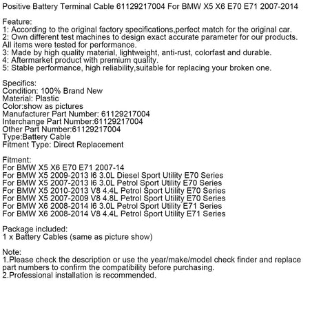 Pluspolkabel für Batterie 61129217004 für BMW X5 X6 E70 E71 2007-2014