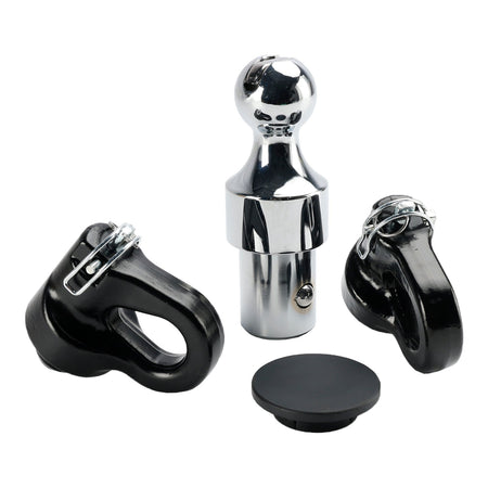 Die Schwanenhalskugel von GM/Nissan/Ford in diesem Kit verfügt über ein patentiertes Design. Sie ist mit einem einfachen Hebel und Haltekugeln ausgestattet, die es erm?glichen, sie einfach in die Schwanenhals-Anh?ngerkupplungs-Mittelscheibe fallen zu lassen und mit einer einfachen Vierteldrehung zu verriegeln. Die Schwanenhalskugel hat einen Durchmesser von 2-5/16 Zoll und ist für 38.000 lbs. GTW und 9.500 lbs. vertikale Last ausgelegt. Für zuverl?ssige St?rke und Sicherheit ist die Schwanenhalskugel aus geschmiedeter und bearbeiteter Stahllegierung gefertigt, mit einer polierten Chrombeschichtung versehen und gründlich nach US VESC V-19-Spezifikationen getestet.