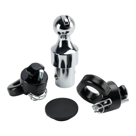 Die Ram-Schwanenhalskugel in diesem Kit verfügt über ein patentiertes Design. Sie ist mit einem einfachen Hebel und Haltekugeln ausgestattet, die es erm?glichen, sie einfach in die Schwanenhals-Anh?ngerkupplungs-Mittelscheibe fallen zu lassen und mit einer einfachen Vierteldrehung zu verriegeln. Die Schwanenhalskugel hat einen Durchmesser von 2-5/16 Zoll und ist für 38.000 lbs. GTW und 9.500 lbs. vertikale Last ausgelegt. Für zuverl?ssige St?rke und Sicherheit ist die Schwanenhalskugel aus geschmiedeter und bearbeiteter Stahllegierung gefertigt, mit einer polierten Chrombeschichtung versehen und gründlich nach US VESC V-19-Spezifikationen getestet.