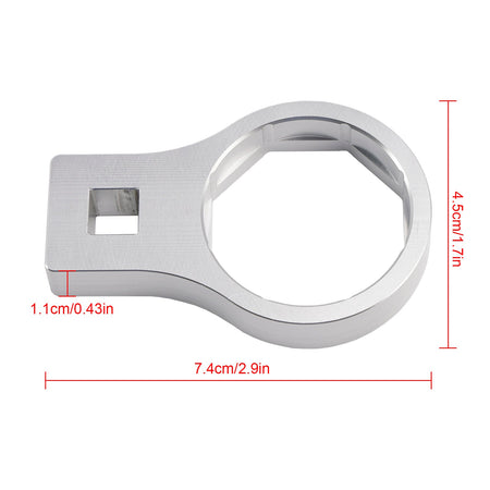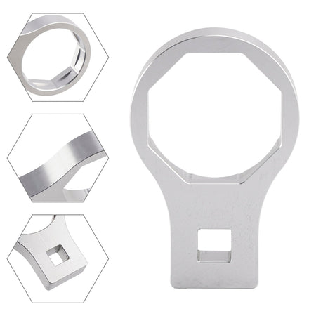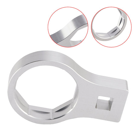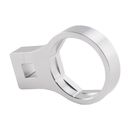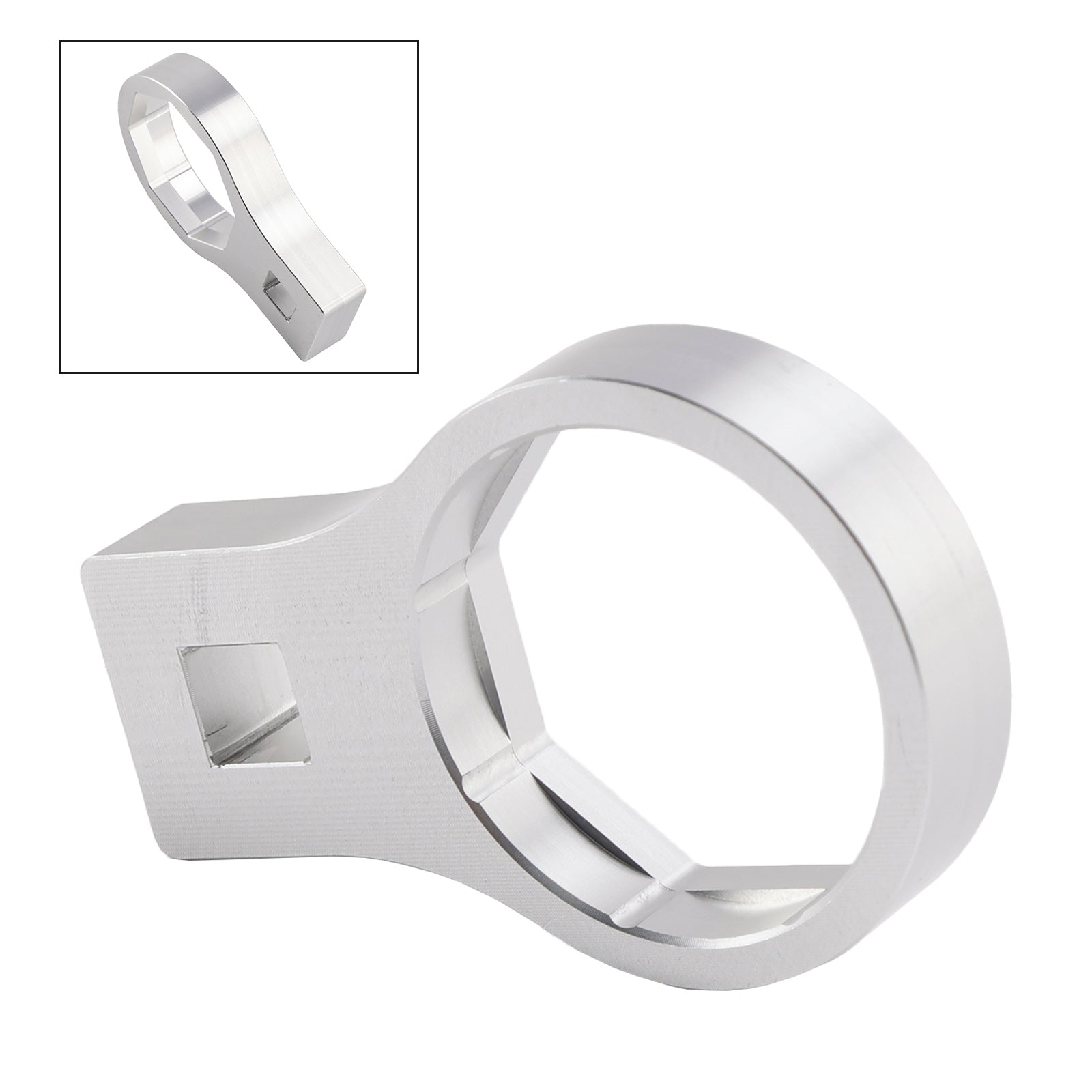 Die Stecknuss hat eine roh bearbeitete Oberfläche. Sie ist CNC-präzisionsgefertigt aus 6061-T6 Aluminium. Sie verwendet einen 3/8""-Vierkantantrieb. Die Schlüsselweite beträgt 1,47"" (ca. 3,7 cm). Sie passt zu den gleichen Anwendungen wie Fox-Teilenummer 398-00-894