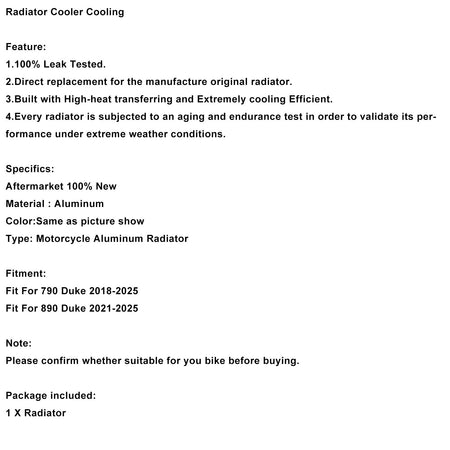 Kühler passend für 790 Duke 18-25 890 Duke 2021-2025
