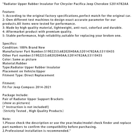Oberer Gummiisolator für Kühler (2014–2021) für Chrysler Pacifica und Jeep Cherokee, Teilenummer 52014782AA