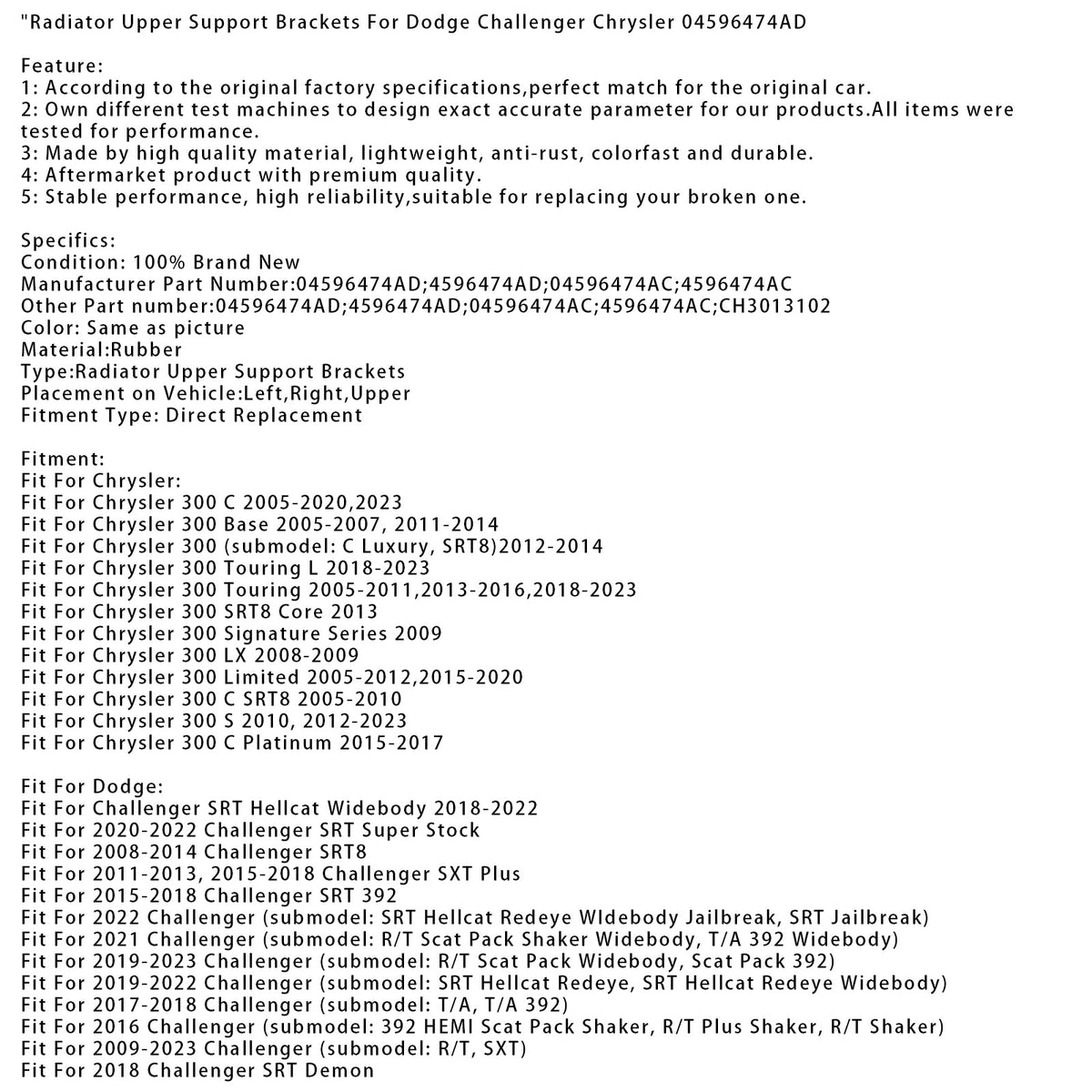 Herstellernummer: 04596474AD; 4596474AD; 04596474AC; 4596474AC