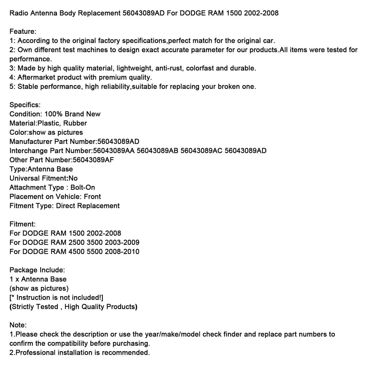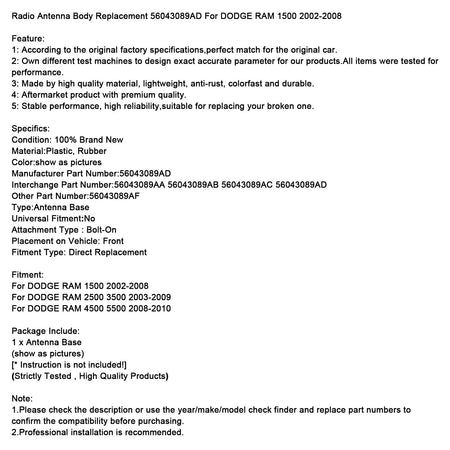 Ersatzteil für Radioantenne 56043089AD für DODGE RAM 1500 (2002–2008)