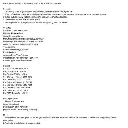Radioantennenmast 22783398 für Buick, Cadillac und Chevrolet