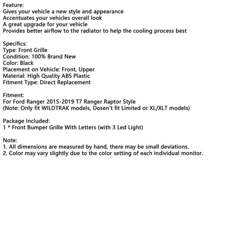 Raptor Style Front Bumper Grill Grille Für Ford Ranger 2015-2019 T7 W/LED