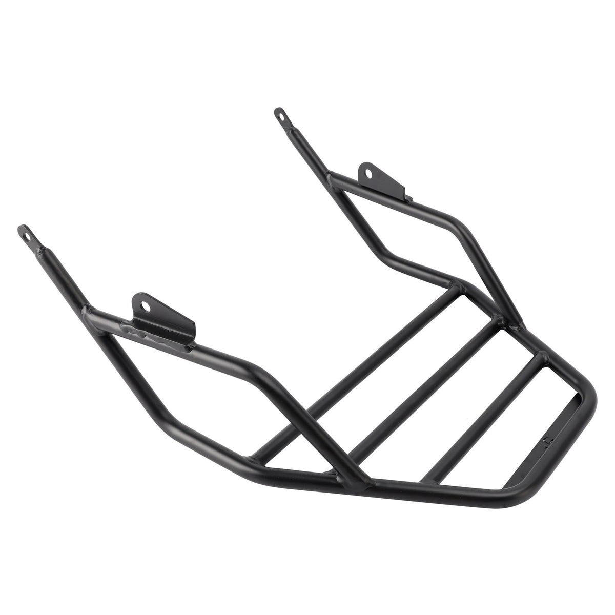Unser robustes, querverstrebtes Gepäckträgersystem fungiert als zusätzlicher Hilfsrahmen, verstärkt das Heck des Motorrads und fungiert als hinterer Sturzbügel.