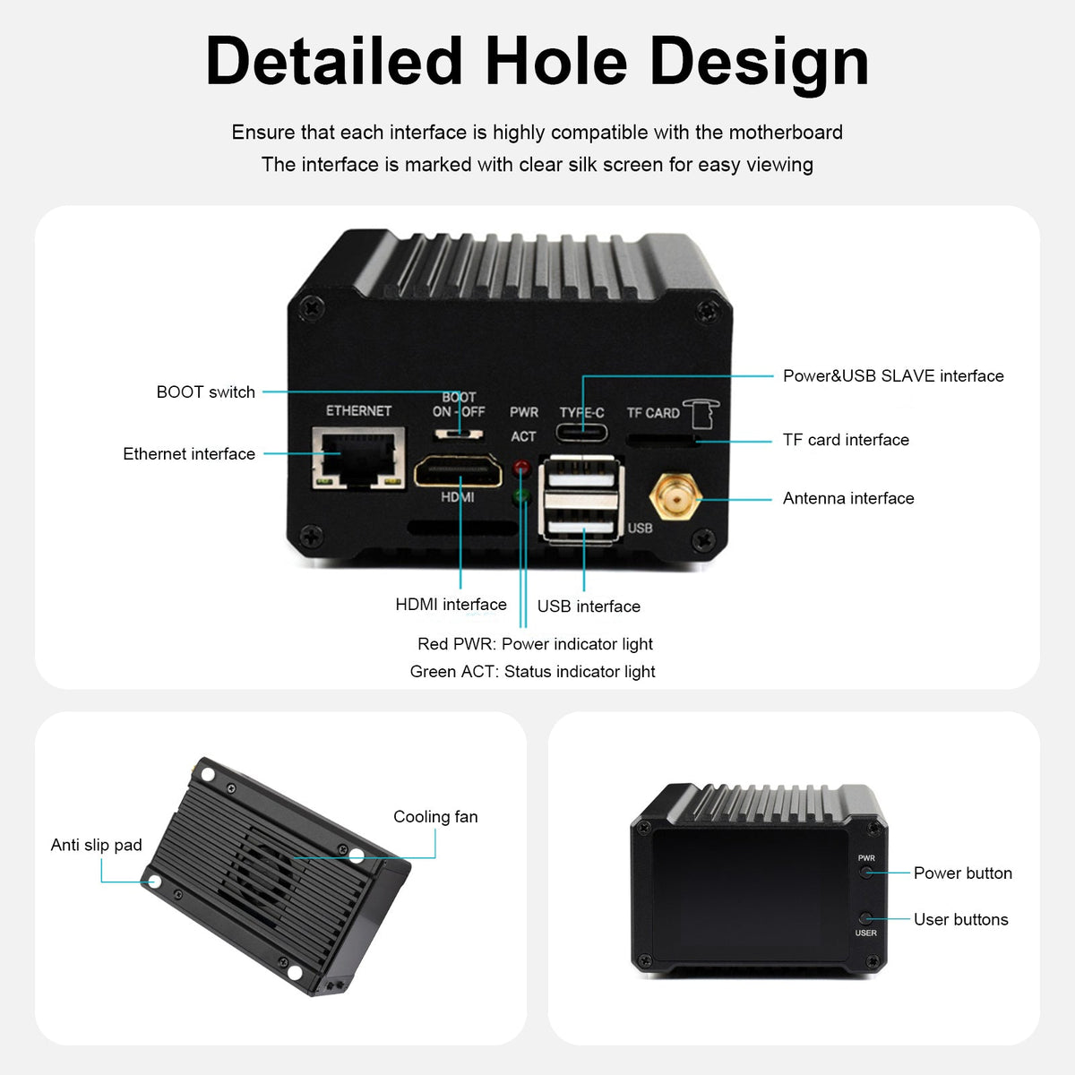 Ausgestattet mit CSI/DSI/FAN/HDMI/USB/RJ45-Gigabit-Ethernet-Anschluss/Micro-SD-Karte und anderen Schnittstellen, bequemer zu bedienen