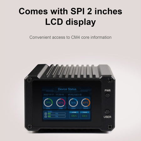 Eingebaute zwei SATA-Schnittstellen, über die 2,5-Zoll-Solid-State-Laufwerke installiert werden k?nnen. Ausgestattet mit einem 2-Zoll-SPI-LCD-Display zur einfachen Anzeige der CM4-Kerninformationen. Die Bedienung ist einfach und komfortabel und Dokumente, Videos und Musik k?nnen jederzeit online angesehen werden.