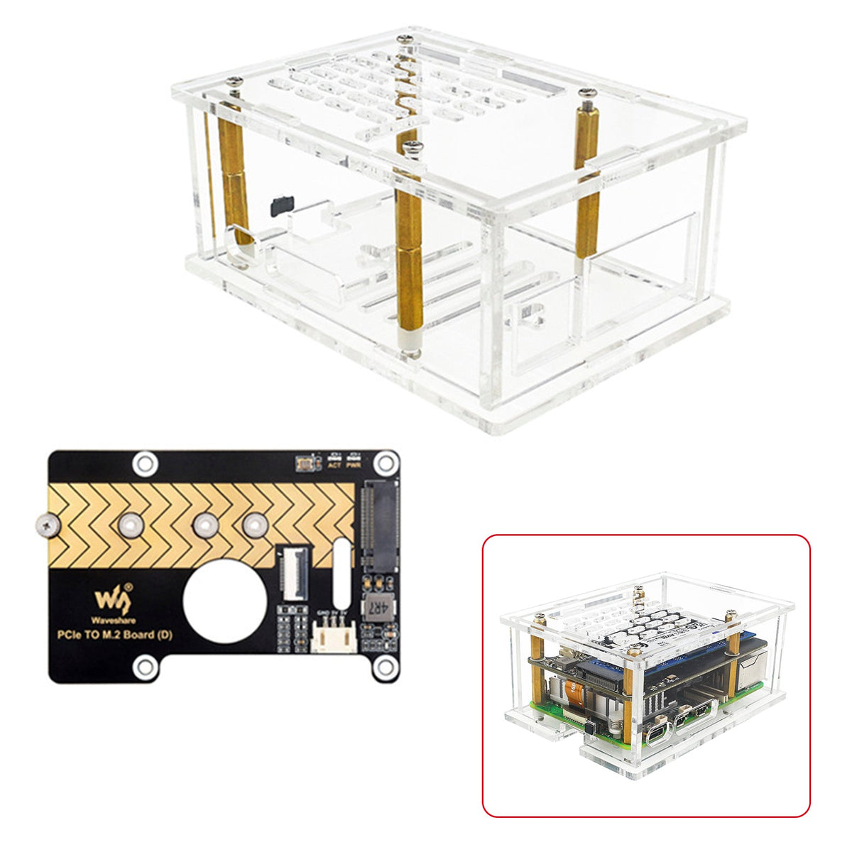 Raspberry Pi 5 PCI-E Adaptergehäuse PI5 PCIe auf M.2 Adapterplatine Acrylbox Kompatibel mit Heizkörper
