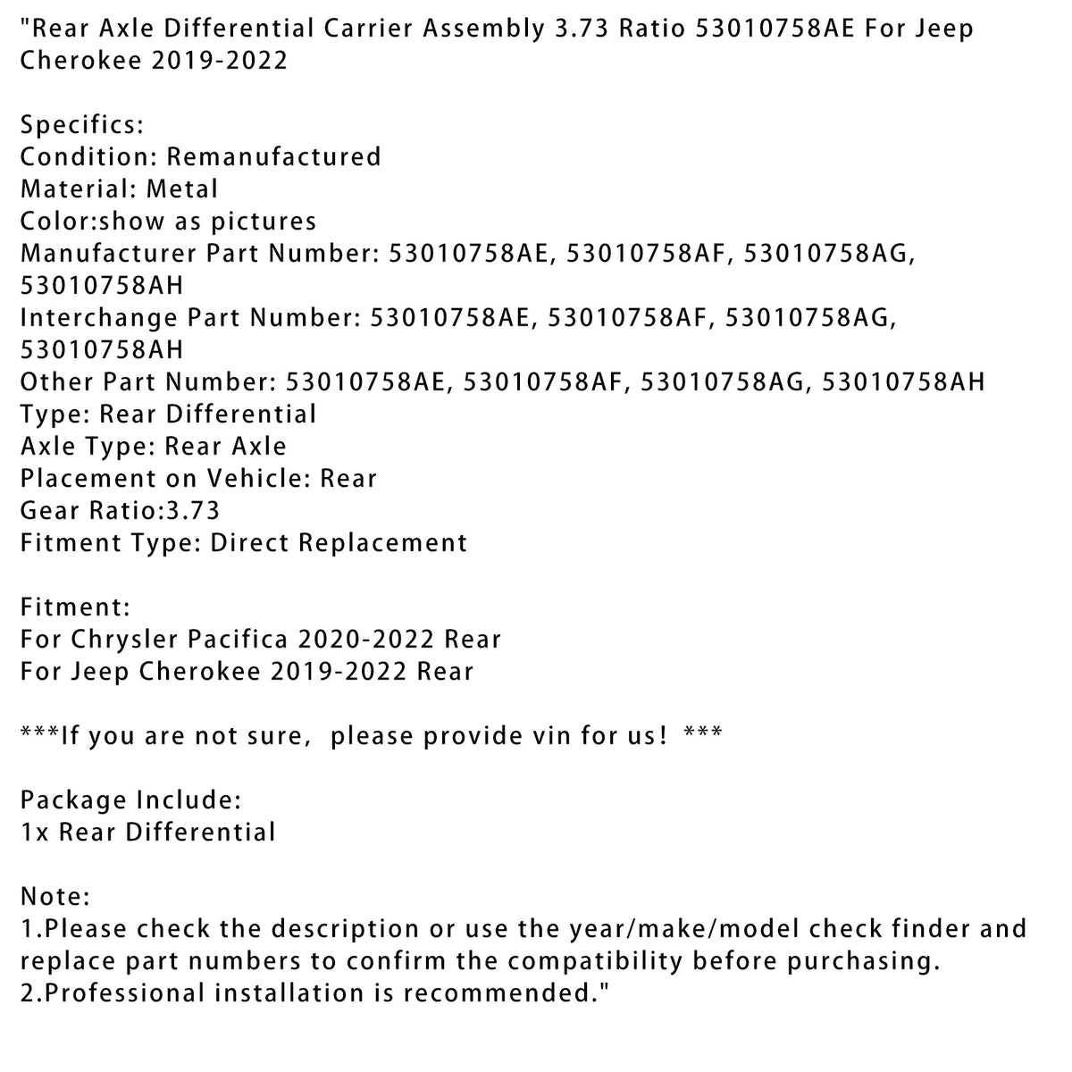 Hinterachse Differential Träger Montage 3,73 Verhältnis 53010758AE Für Jeep Cherokee 2019-2022