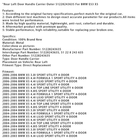 Hinten Links Türgriff Träger Äußere 51228243635 Für BMW E53 X5