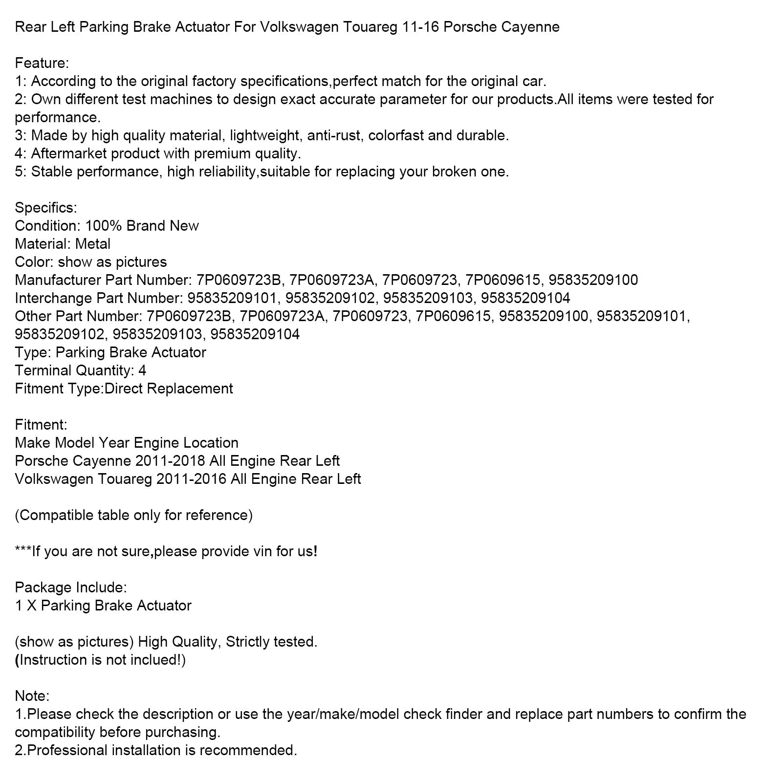 Hinten Links Feststellbremse Antrieb Für Volkswagen Touareg 11-16 Porsche Cayenne 7P0609723B