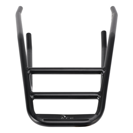 Unser robustes, kreuzverstrebtes Gepäckträgersystem fungiert wie ein zusätzlicher Hilfsrahmen, verstärkt das Heck des Fahrrads und wirkt wie ein hinterer Sturzbügel.