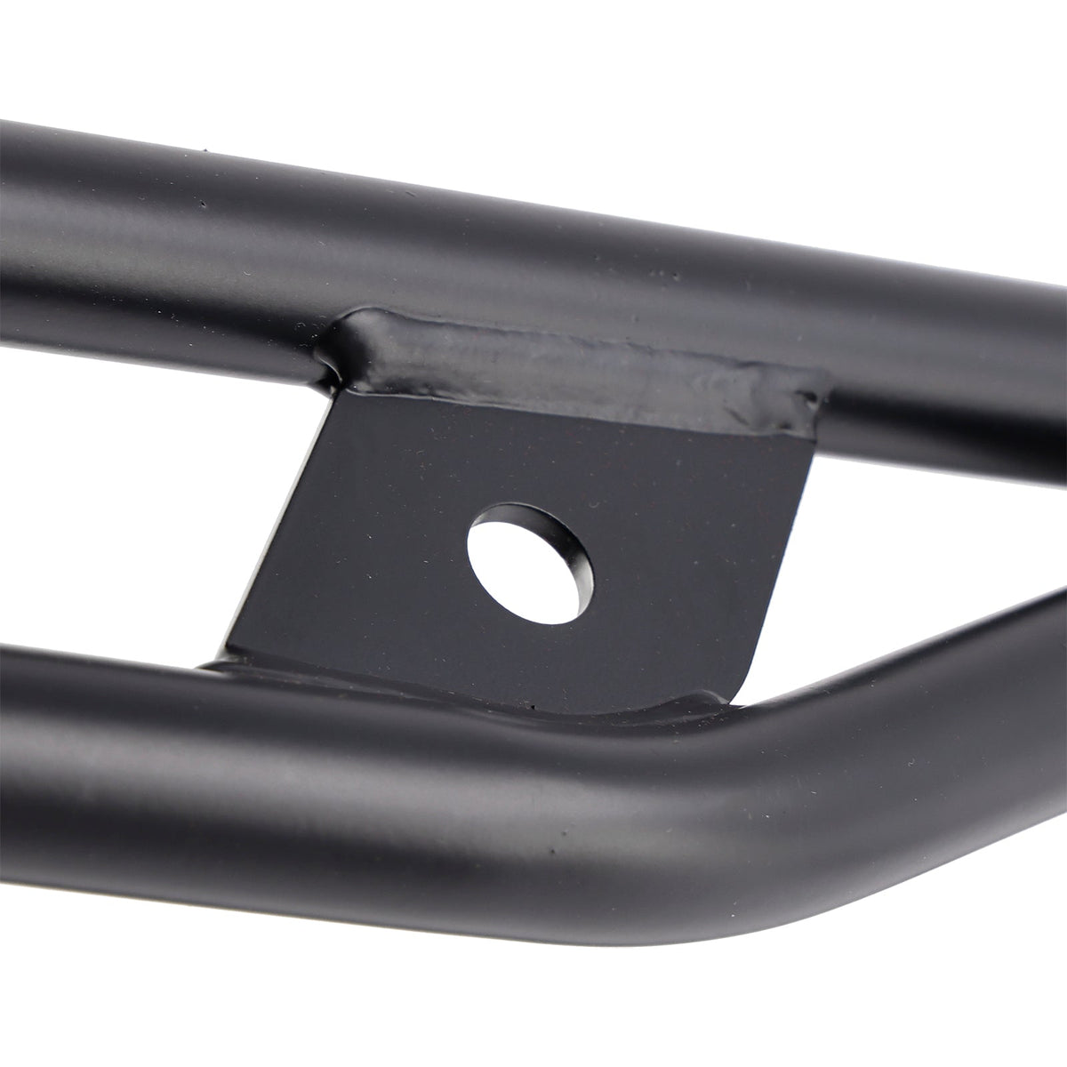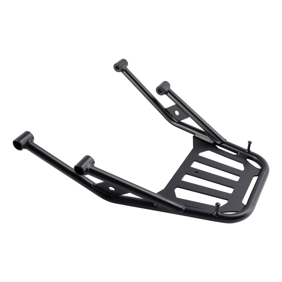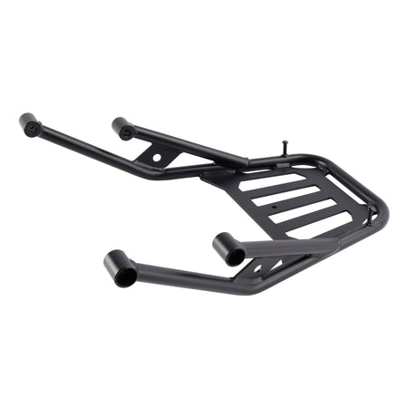 Unser robustes, querverstrebtes Gepäckträgersystem fungiert als zusätzlicher Hilfsrahmen, verstärkt das Heck des Motorrads und fungiert als hinterer Sturzbügel.