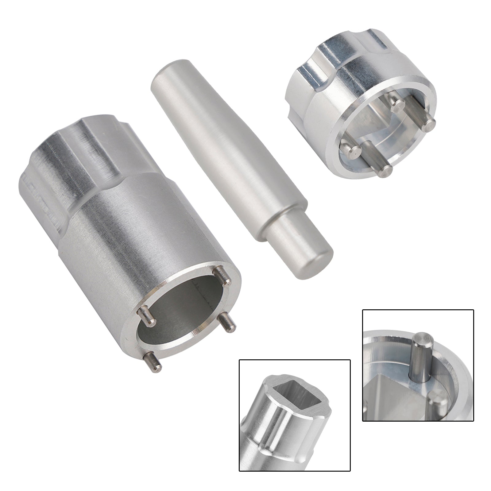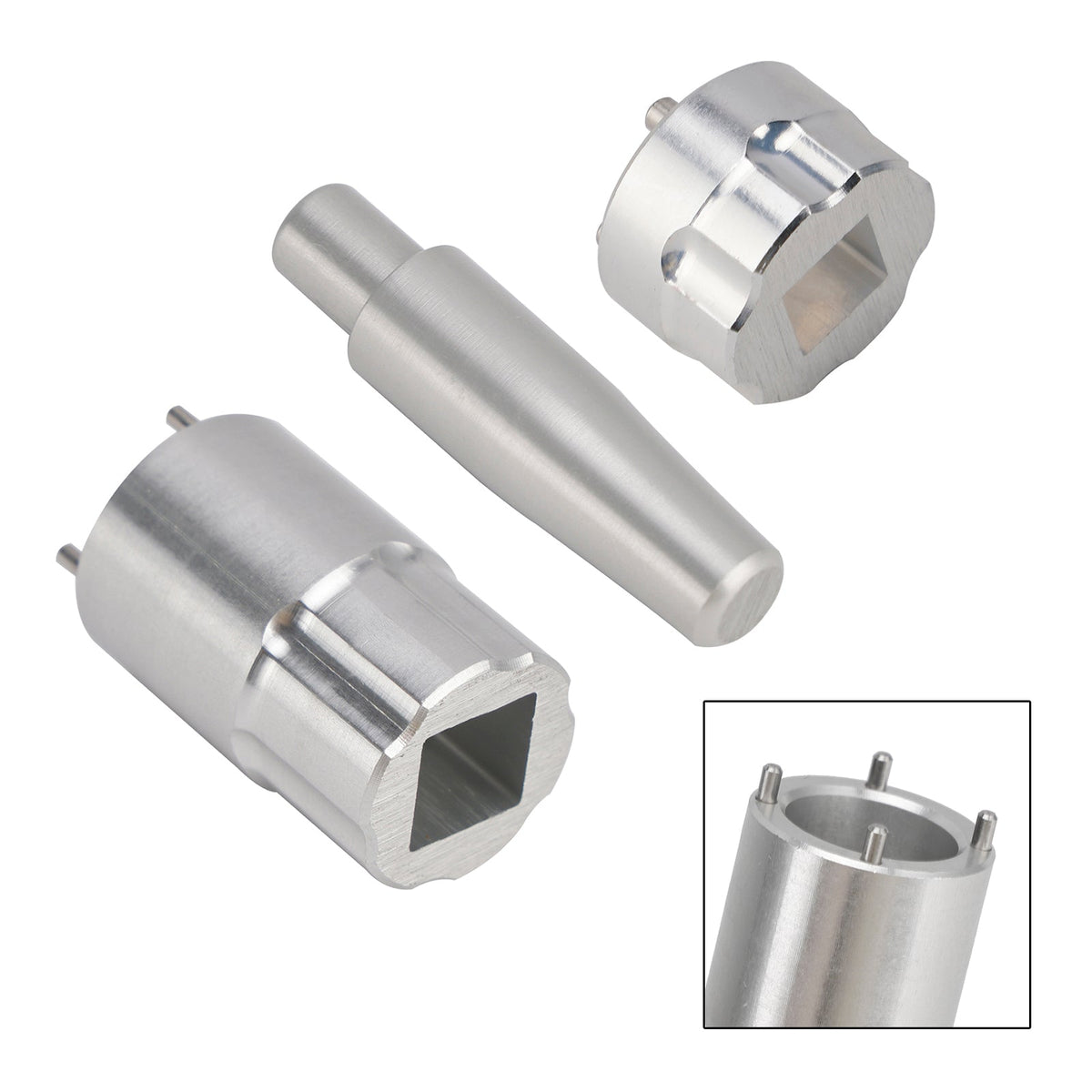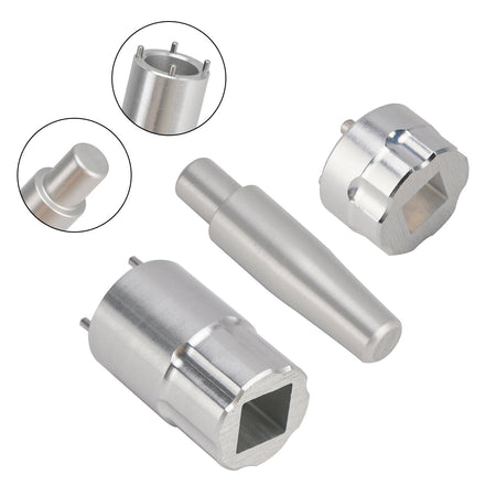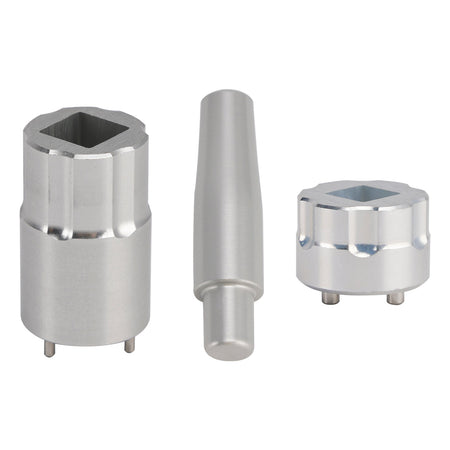 Diese dienen zum Entfernen der Zugstufenkappe und des Basisventiltreibers an einem DPX2-FOX-Dämpfer. Sie sind eine Kopie der FOX-Werkzeuge und passen wie die Fox-Teilenummer 398-00-761 und 398-00-763. Beide verfügen über gehärtete Stahlstifte und einen 3/8-Vierkantantrieb. Wir haben seitliche Kerben angebracht, um bei öliger Fahrbahn Halt zu bieten. Mit dem Bullet-Werkzeug lässt sich der Dichtungskopf über die Welle schieben, ohne die Dichtung eines Fox DPX2 zu beschädigen. Es passt wie die Fox-Teilenummer 398-00-764