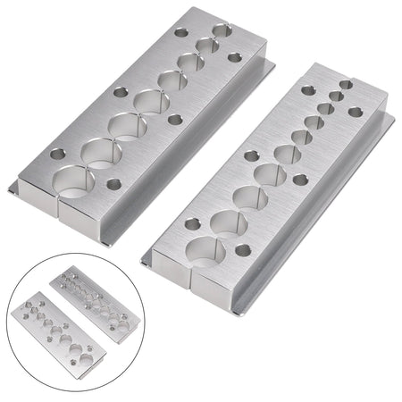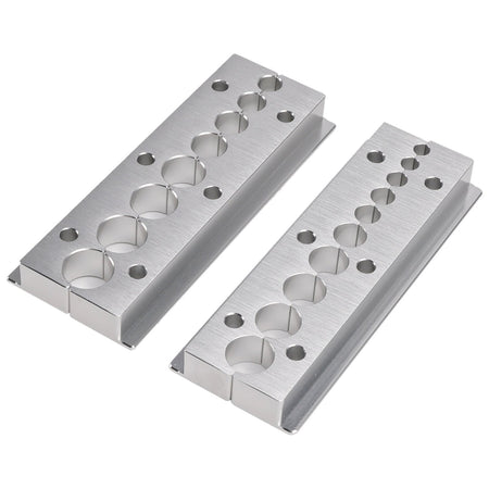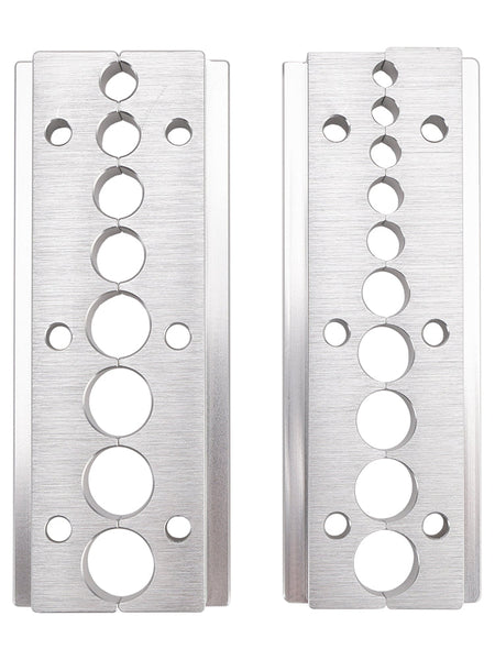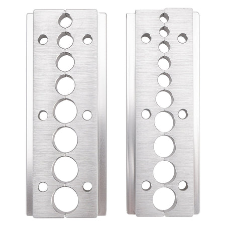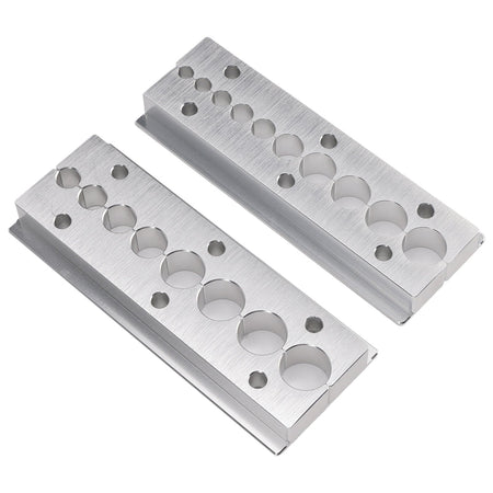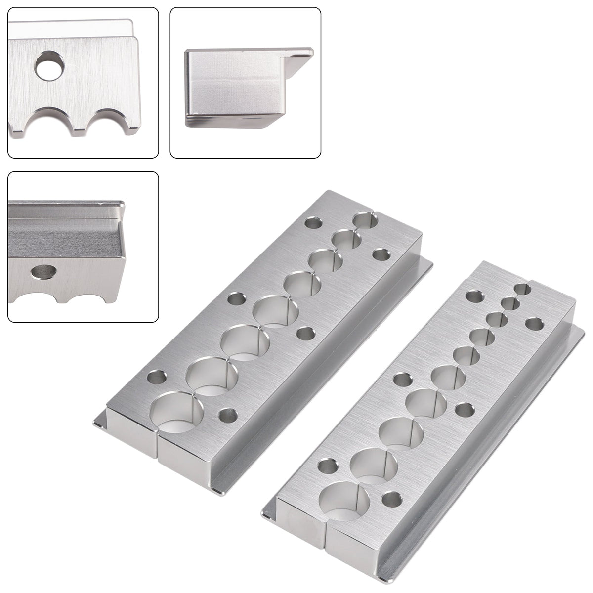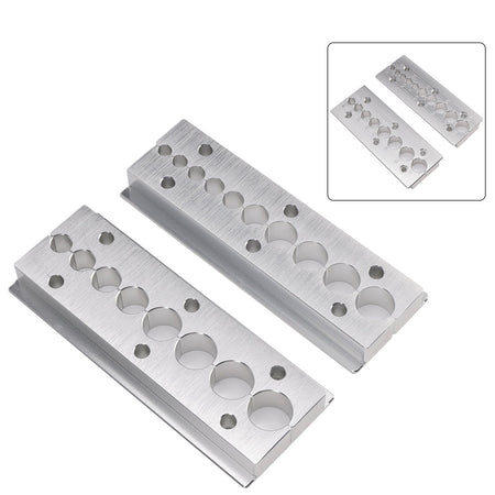 Aluminium ist den Kunststoffversionen überlegen, da es eine bessere Haltekraft hat (Kunststoff hat bei kleineren Löchern Schwierigkeiten, ausreichend festzuhalten). Außerdem sind sie hitzebeständig. Außerdem sind sie so steif, dass sie über den Schraubstock hinausragen und so mehr Platz bieten. Kunststoff verliert schnell seine Haltekraft, sobald er über die Schraubstockbacken hinausragt.