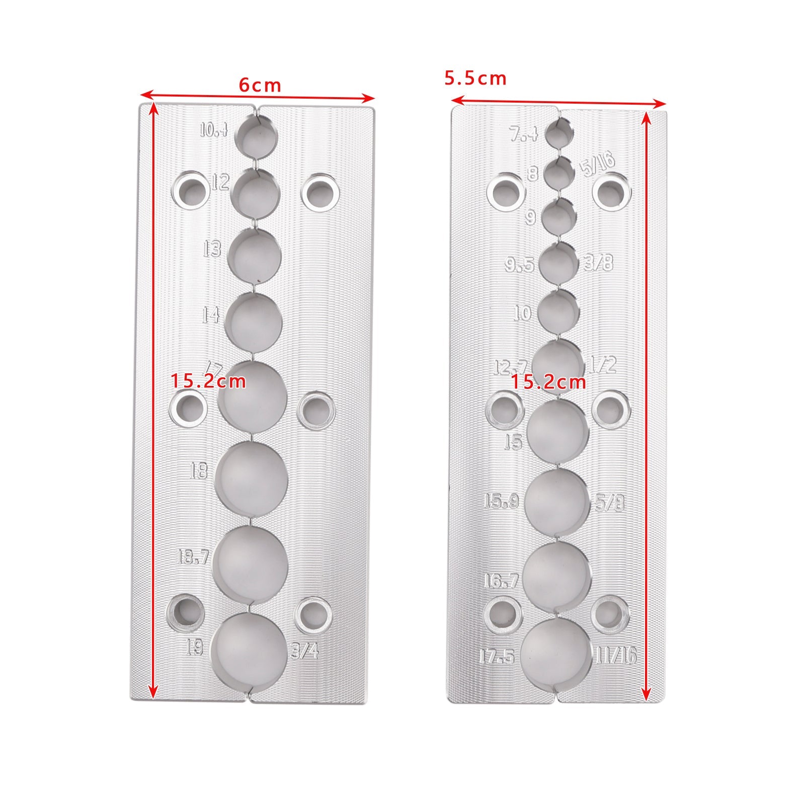 Dies ist ein ziemlich umfassendes Set für kleine Größen, das 7,4 mm, 8 mm, 9 mm, 3/8""/9,5 mm, 10 mm, 10,4 mm, 12 mm, 1/2""/12,7 mm, 13 mm, 14 mm, 15 mm, 15,9 mm/5/8"", 16,7 mm, 17 mm, 17,5 mm/11/16"", 18 mm, 18,7 mm, 3/4""/19 mm umfasst.