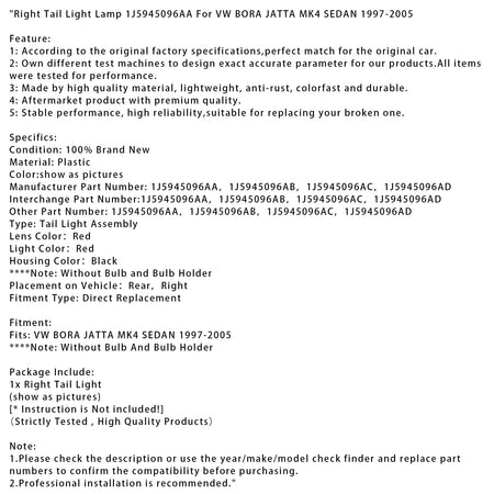 Rechte Rückleuchte 1J5945096AA Passend für VW Bora Jatta MK4 Limousine 1997-2005