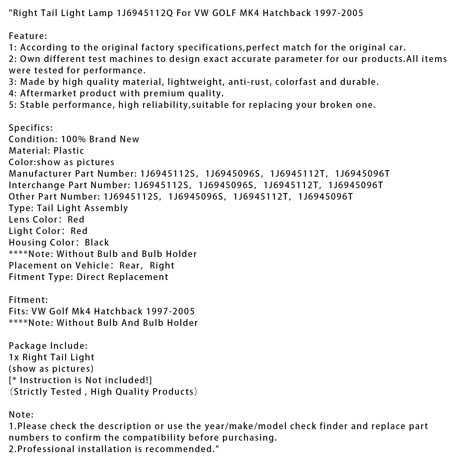1. Bitte überprüfen Sie vor dem Kauf die Beschreibung oder verwenden Sie die Teilenummern-Prüfung (Jahr/Marke/Modell) und vergleichen Sie die Teilenummern, um die Kompatibilität zu bestätigen.