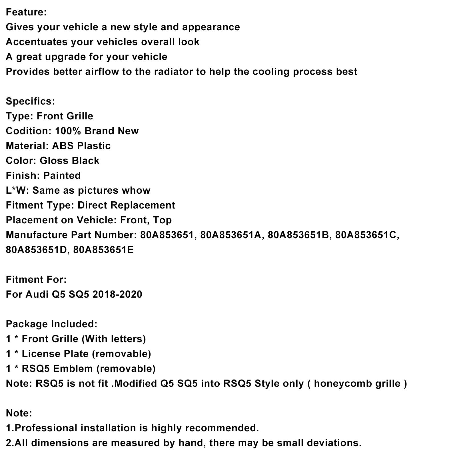 RSQ5 Style Front Honeycomb Mesh Grille Grill Fit Audi Q5 SQ5 2018-2020