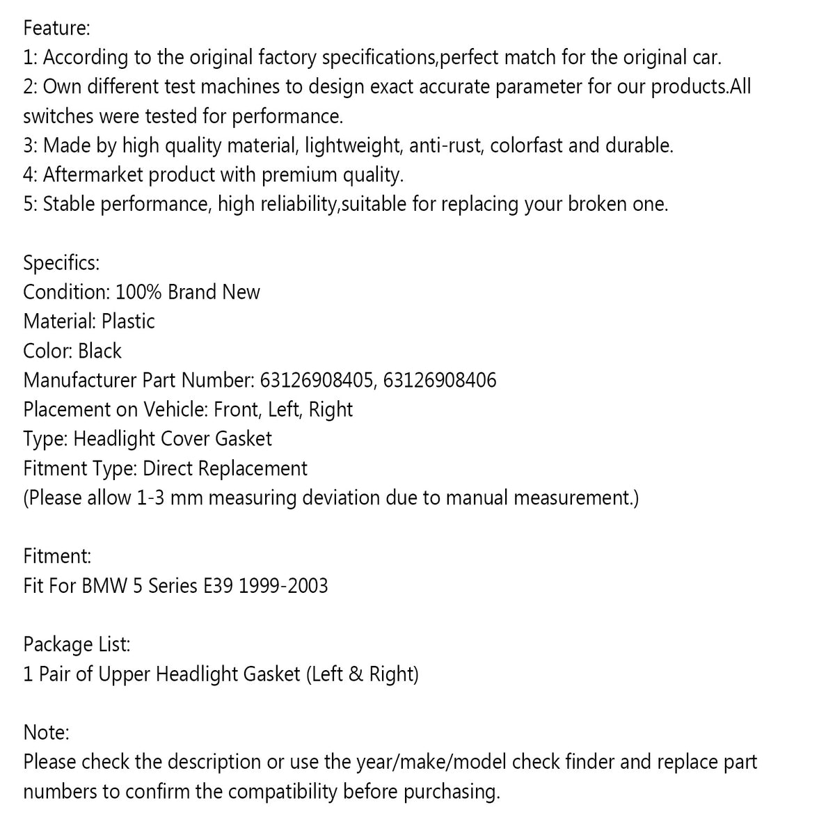 Scheinwerfer Dichtung Links Rechts 63126908405 63126908406 Für BMW 5 E39 99-03