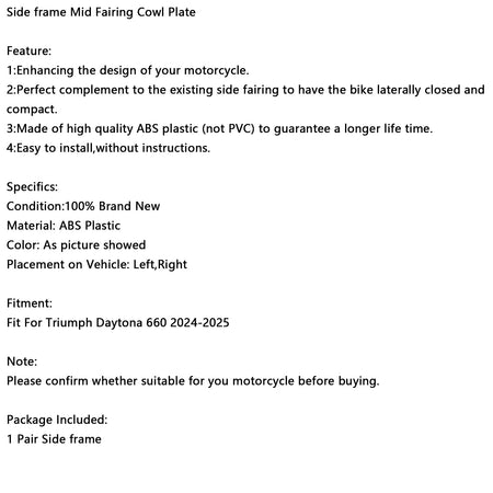 Seitenrahmen Mittelverkleidung Gugelplatte Passend für Daytona 660 2024-2025